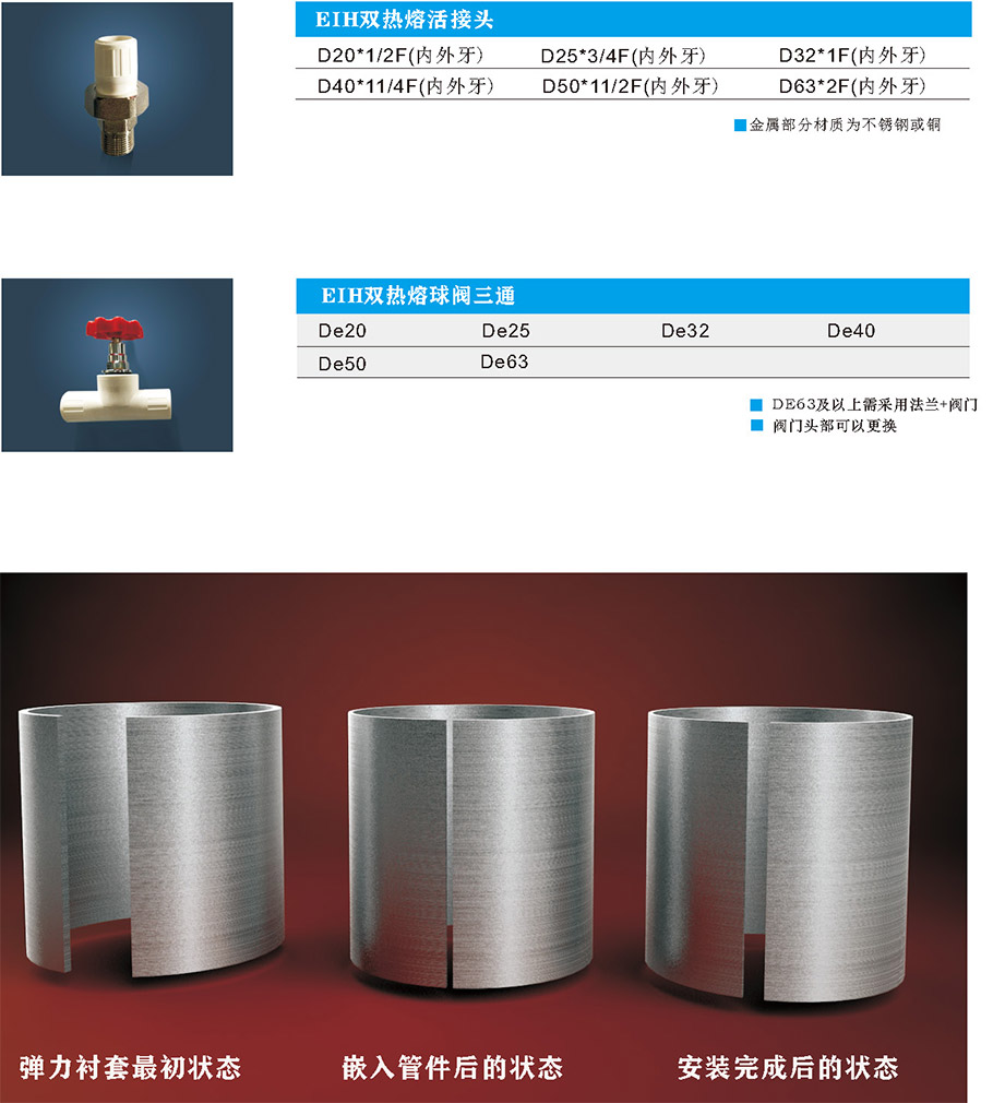 帶彈力襯套型電磁感應(yīng)加熱型(EIH)雙熱熔管件說明